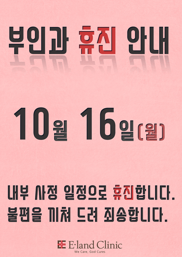 [부인과휴진] 10월 16일(월) 부인과 외래 휴진합니다.