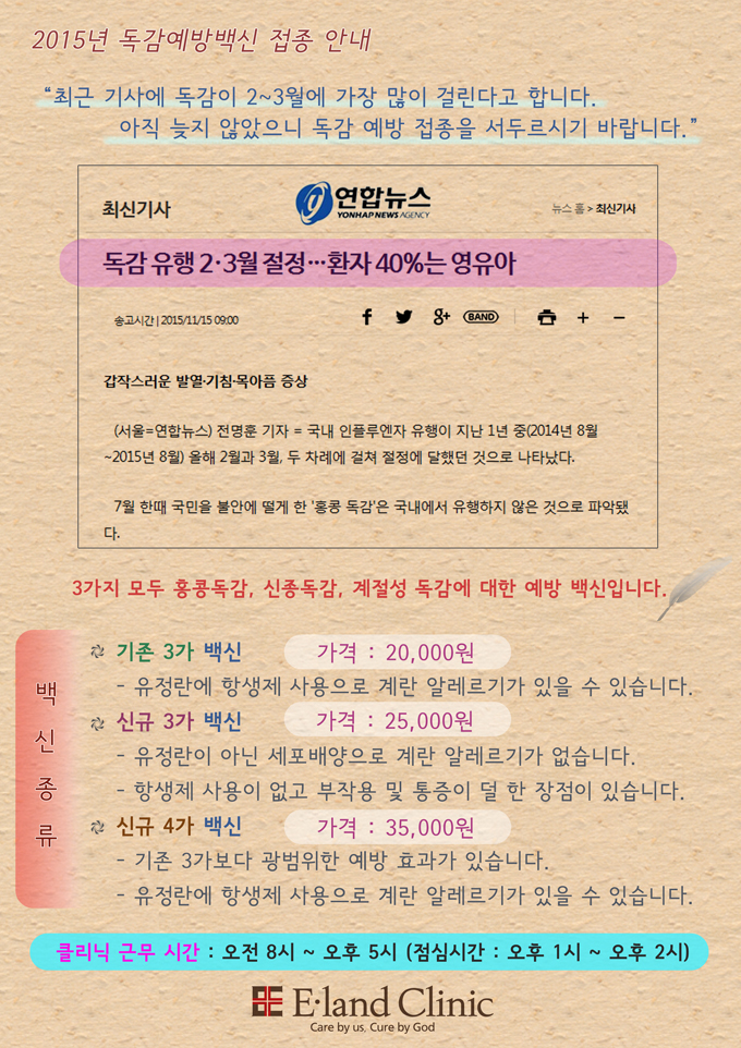 독감 예방 접종 일반가 인하 안내