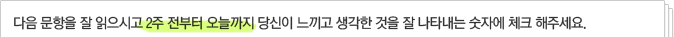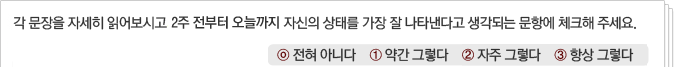 * 아래 문항을 읽고 자신의 현재 상태에 해당하는 내용에 표시해 주십시오.